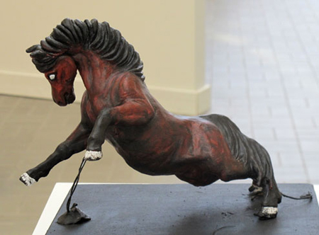 Fredrik Wimmercranz fascineras av ansikten och visar bland annat Myllret, en mängd ansikten målade i akryl. Samuel Lethos La-di-fucking-da-di, ett mörkt mansansikte med en svart lapp för ena ögat, drar blickarna till sig. Kurskamraten Per Nenzelius presenterar ett analogt, närmast måleriskt foto i en serie om fem bilder med titlar som Väntrummet och Krossad ruta. Bland utvecklingsårets tio utställare finns tre tjejer. Therese Mattson satsar på en framtid som illustratör och söker vidare till grafiska utbildningar. I utställningen visar hon sitt barnboksprojekt med romantiska sagoillustrationer. Maria Fandén vill rita serier och visar teckningar i blyerts samt en energiskt hoppande häst i modellera som jag verkligen gillar. Carolina Norin har lyckats få till en estetiskt tilltalande relief av krossade cd-skivor.