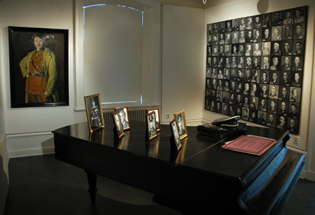 I utställningens inre rum står en stor flygel mitt på golvet, blankt svartlackerad liksom den tjocka ram som omgärdar ett ”idolporträtt” av Hitler på väggen framför. På flygeln ligger notblad till skön Mozartmusik tillsammans med en SS-officers huvudbonad och skinnväska som har denne just kommit in i rummet. Som ytterligare blickfång står en handfull allvarliga porträtt av tyska krigsministrar uppställda på flygeln. Detta handlar helt enkelt om högsta form av kultur i Tyskland i början av 40-talet, statligt sanktionerad och av högsta rang – på mer än ett sätt. Som diametral kontrast till denna förgyllda värld framstår den andra väggen, grått tapetserad av närmare hundra porträtt av koncentrationslägerfångar, de degenererade, de icke önskvärda, de utrotningsbestämda.