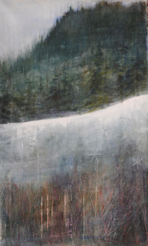 Karin Olsén Öbergs båda målningar ”Det är i alla fall på gång” i akryl och ”En vän för livet” i olja är de båda verk som verkar ha fångat landskapet Nordingrå allra mest. Det är ett skickligt måleri som både berör och går på djupet i den norrländska folksjälen. Med lätt hand och i många skikt har hon lyckats fånga den speciella genomskinliga luften vid en dagsmeja, skogens kontrasterande svärta och det fina, frostiga mönstret i snön, som håller på att smälta bort och försvinna.
